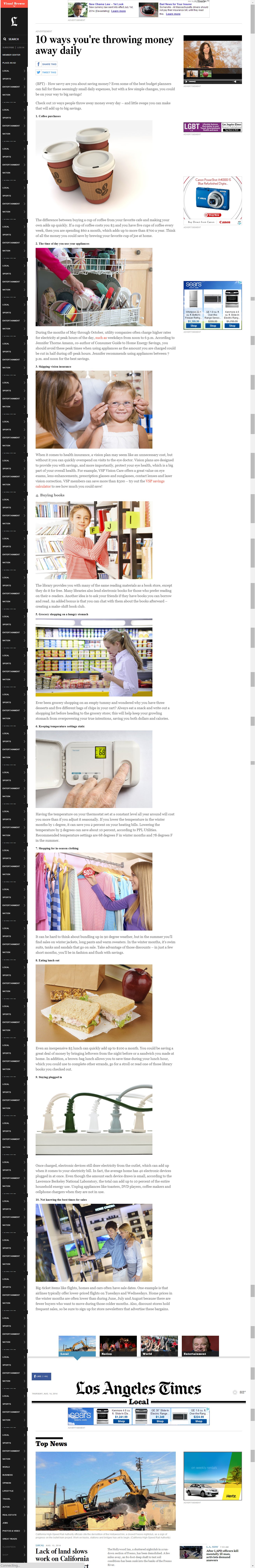 The very first result looked like a great story to bring to the attention of Consumer World readers — “10 Ways You’re Throwing Money Away Daily.” Upon clicking the link, one is brought to that story on the LA Times website: