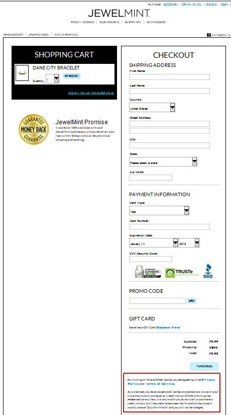 If a company has decided to run a jewelry of the month club… just say that, no? Why hide this critical information from the customer? Contrast JewelMint’s sneaky approach with DollarShaveClub.com that straightforwardly tells customers they will get a fresh package of shaving blades every month (and is getting a ton of favorable publicity).