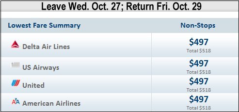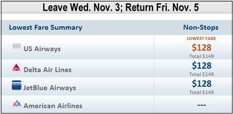 Now, let’s price out that same flight, exactly one week later — leaving on Wednesday Nov. 3 and returning that Friday: