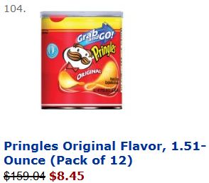 Twelve packages of gummy bears marked right on the package “2 for $1” list for $6, not $95 as Amazon claims. A two pound can of Folgers coffee is not $146 anywhere, just over a pound of Pringles doesn’t list for the $159 the site claimed, and less than six pounds of Twizzlers doesn’t have a value of over $271.
