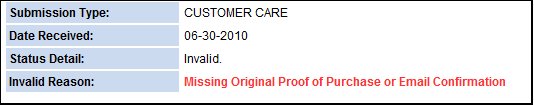 “When the resub was done via fax (and the campaign was in an open status), it was invalidated because the campaign rules require an “original” UPC code. Your original, however, was sent with your original envelope, so you had no way of submitting an original. Symantec allows us to override when this happens, but the override can only get triggered when the customer calls, which is how you ultimately were made valid.”